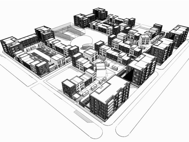 Eigen initiatief voor een ontwerp voor een grote kavel in Terwijde Utrecht aan het spoor. Veel hoogbouw gewenst wat leidde tot een invulling waardoor er bijna een wijk in een wijk ontstaat.